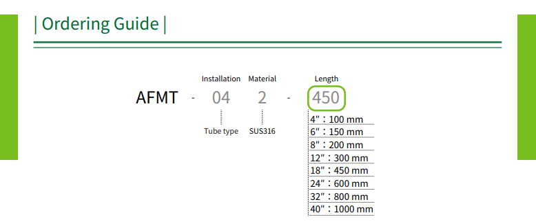 Duct-mounting type / Material:Stainless 316 Operating temperature:Max. 250°C Length:4" ... 40"(100 ... 1000 mm) Option:differencial pressure trainsmitter(Can measure flow)